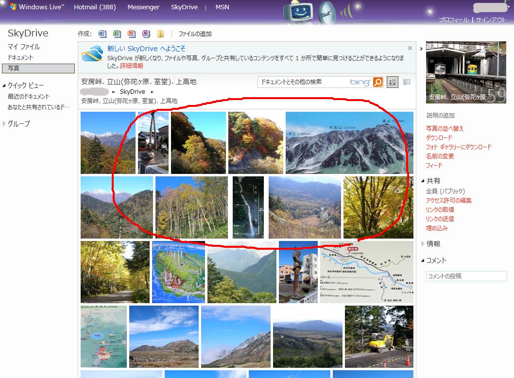 SkyDrive上のファイルをその形式に合わせてウェブアプリケーションで表示できるようになりましたが、やはりMS社の文書と写真ビューアまでで、これまで他のウェブアプリから(綺麗ではないにしても)直接にURLアクセスできたのを思うと、SkyDriveの有効範囲が矮小化されたような気持ちになります。