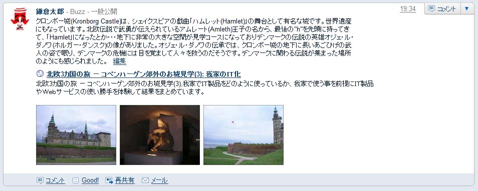 buzzの投稿記事の1つのhtmlを表示したのがこちらですが、Gmailでbuzzを表示するとこのようになります。