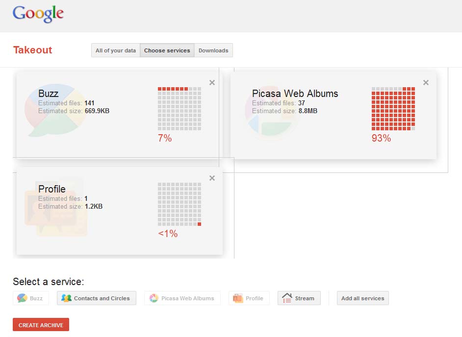グーグル社Data Liberation公式ブログによると、「Google Takeout」を使うと容易にGoogleサイトに登録した情報を取り出せるようになりました。
