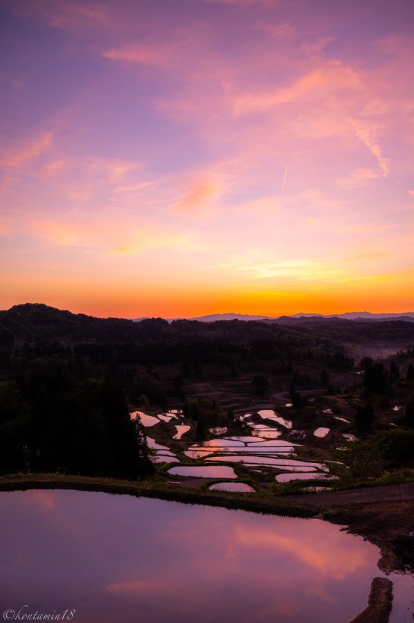 Twitterに投稿された写真「幻想的な夕暮れの棚田」