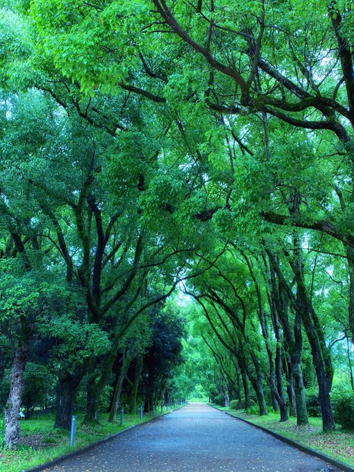Twitterに投稿された写真「通り雨に映える道」