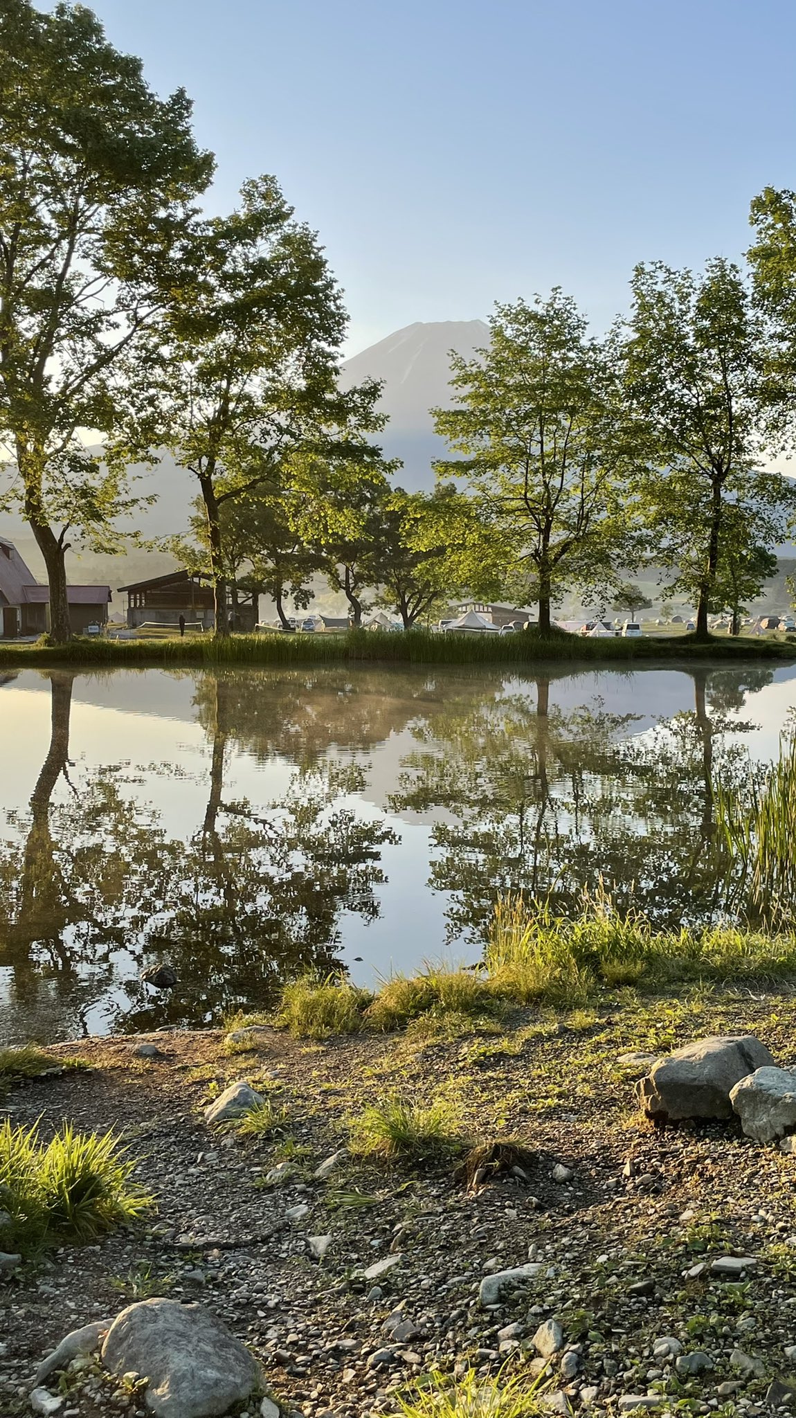 )さんが投稿した"木々の合間から逆さ富士"の写真です。