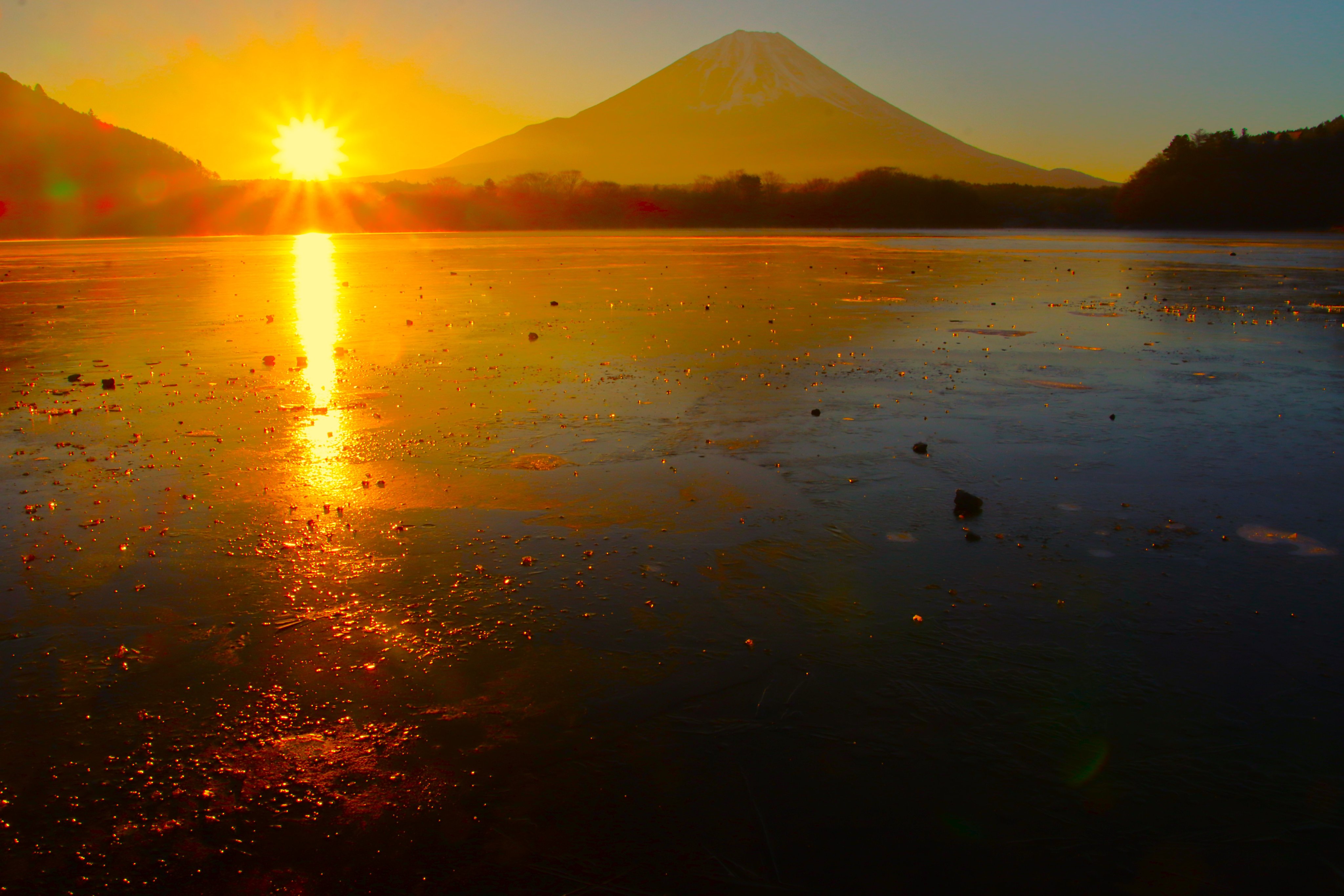 )さんが投稿した"結氷した精進湖で日の出"の写真です。