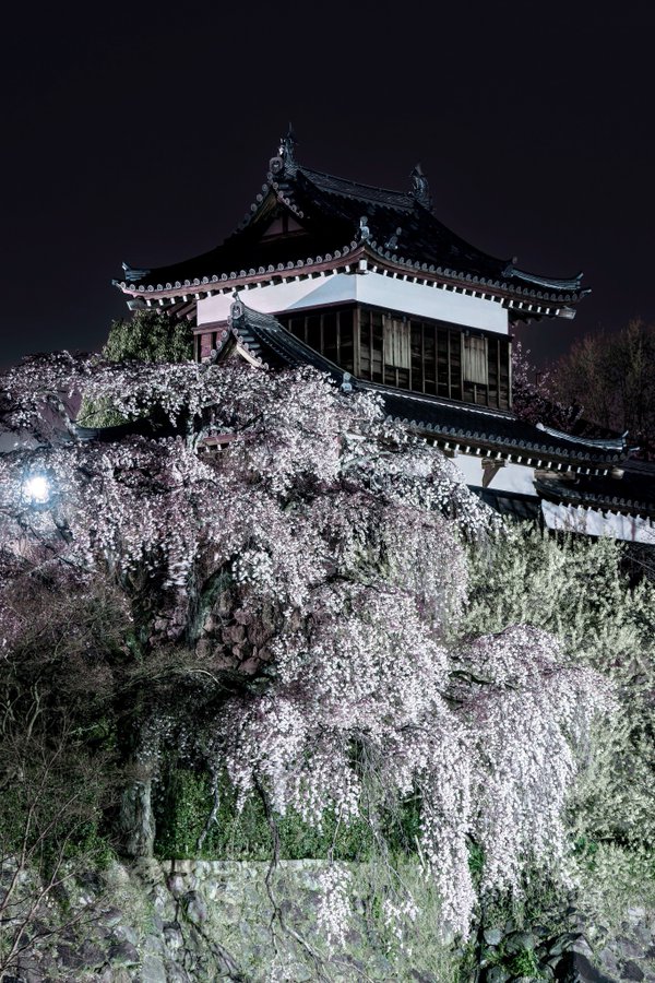 Twitterに投稿された写真「大和国・郡山城のシダレザクラ」