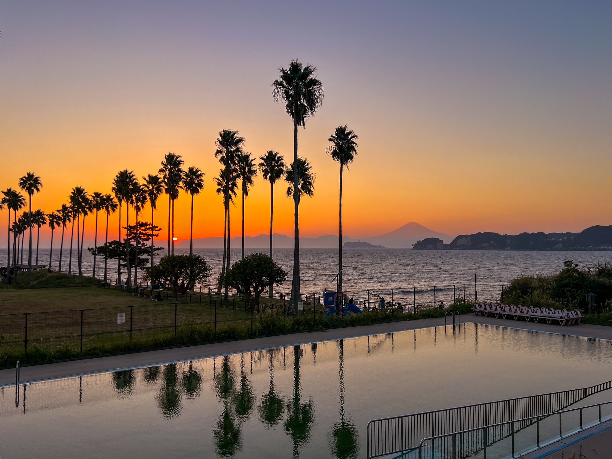 ツイッター・アカウント 早水健一(@avant0821)さん投稿の"夕焼けに逗子マリーナから富士山"