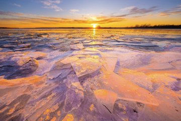 Twitterに投稿された写真「朝焼けに北海道 別海町で本別海の一本松と結氷」