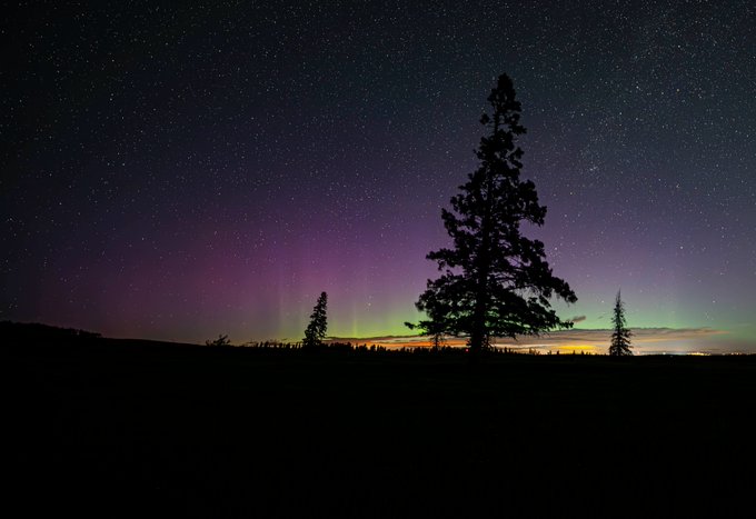 Twitterに投稿された写真「カナダ アルバータ州のカルガリー郊外でオーロラ」