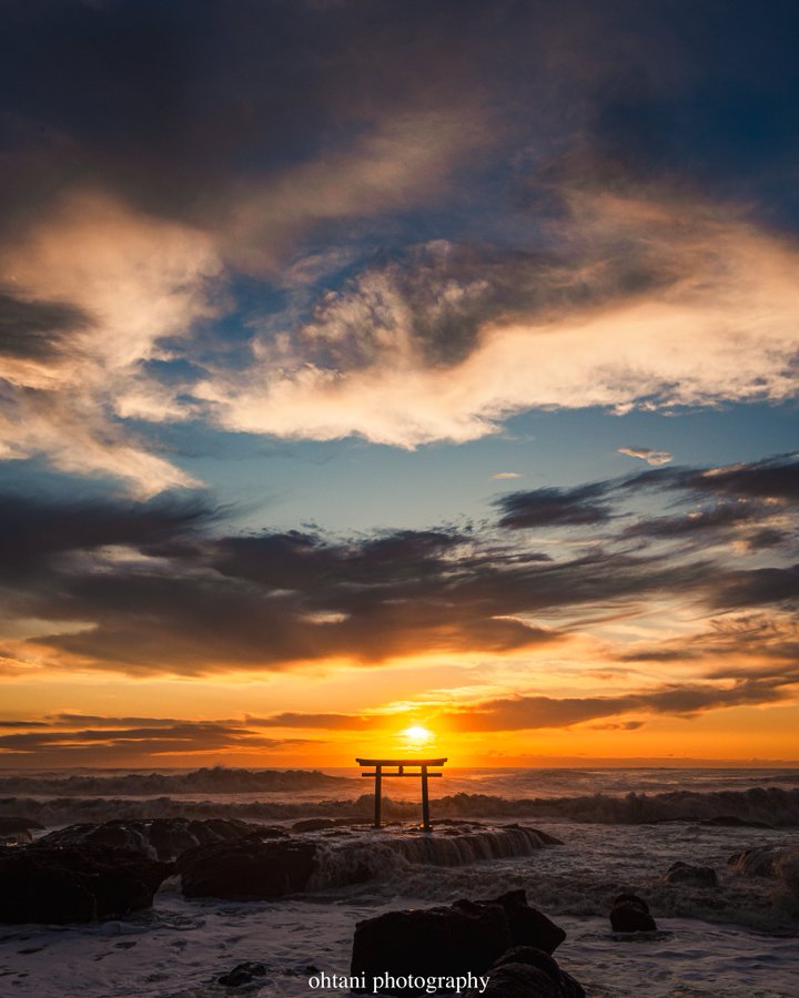 Twitterに投稿された写真「茨城県 大洗磯前神社の『神磯の鳥居⛩』と日の出☀」