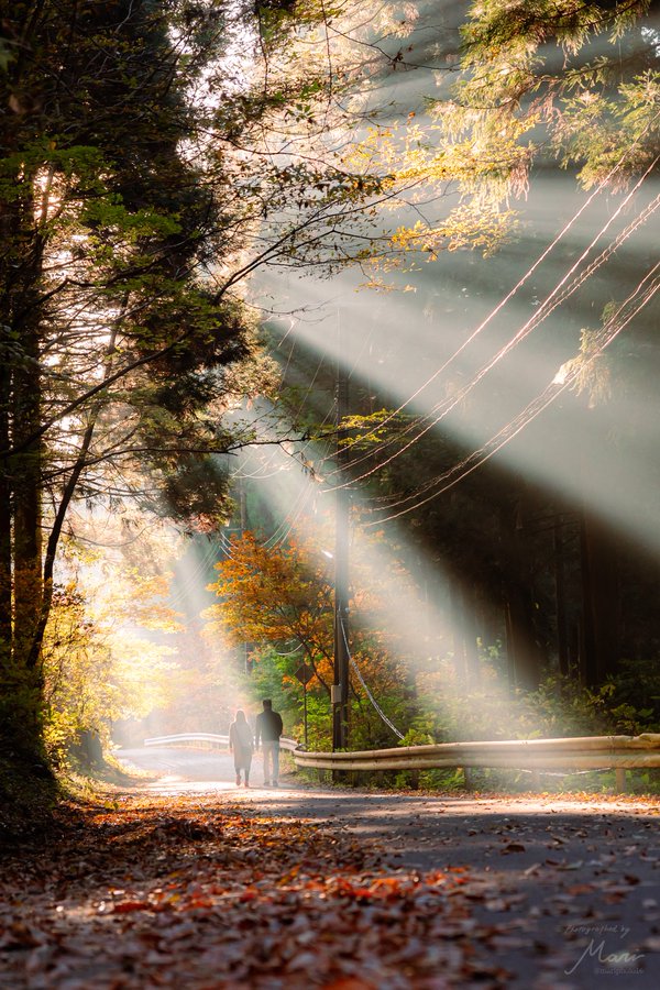 Twitterに投稿された写真「木漏れ日の射す穏やかな紅葉」