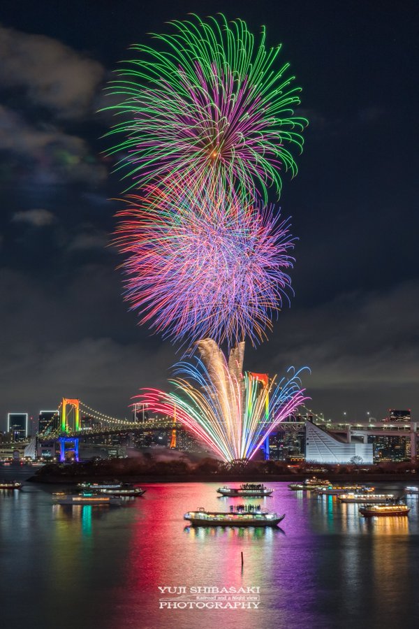 Twitterに投稿された写真「お台場レインボー花火 2024」