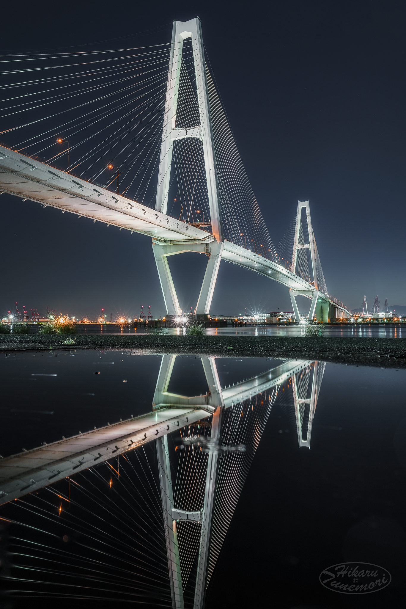 Twitterに投稿された写真「名古屋港の橋梁『名港中央大橋』のライトアップ」