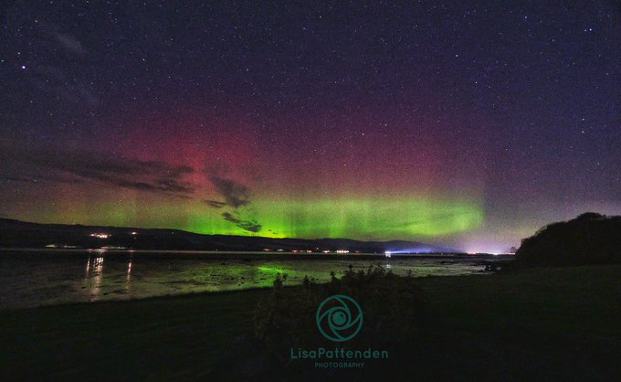 こちらはTwitterアカウント「Lisa Pattenden Aurora Chaser(@London_Lady)」さんが投稿した写真「英国スコットランド クロマーティ湾(Cromarty Firth)でオーロラ」です。