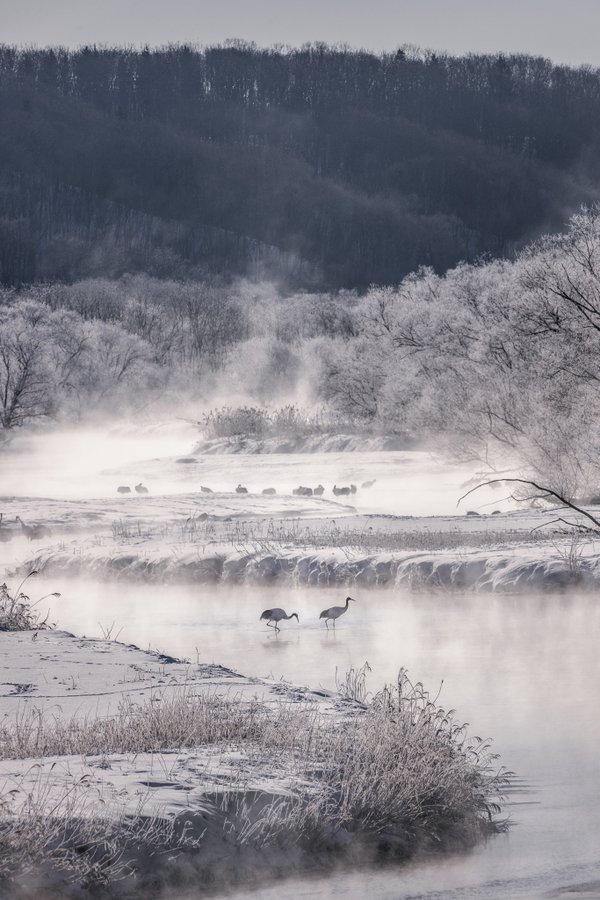 Twitterに投稿された写真「氷点下20℃の北海道の朝」