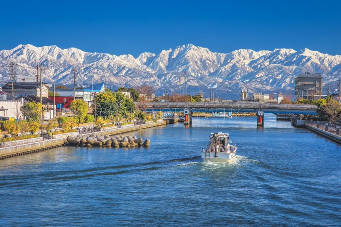 Twitterに投稿された写真「富山市 岩瀬運河から立山連峰」