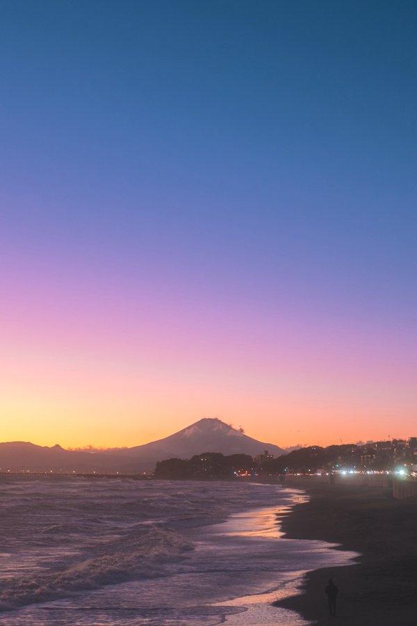 ツイッター・アカウント るい(@ruiruicamovi)さん投稿の"鎌倉 稲村ガ崎で鮮やかな富士山"
