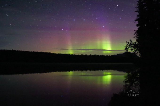 Twitterに投稿された写真「カナダ アルバータ州のカナナスキス近くでオーロラ」