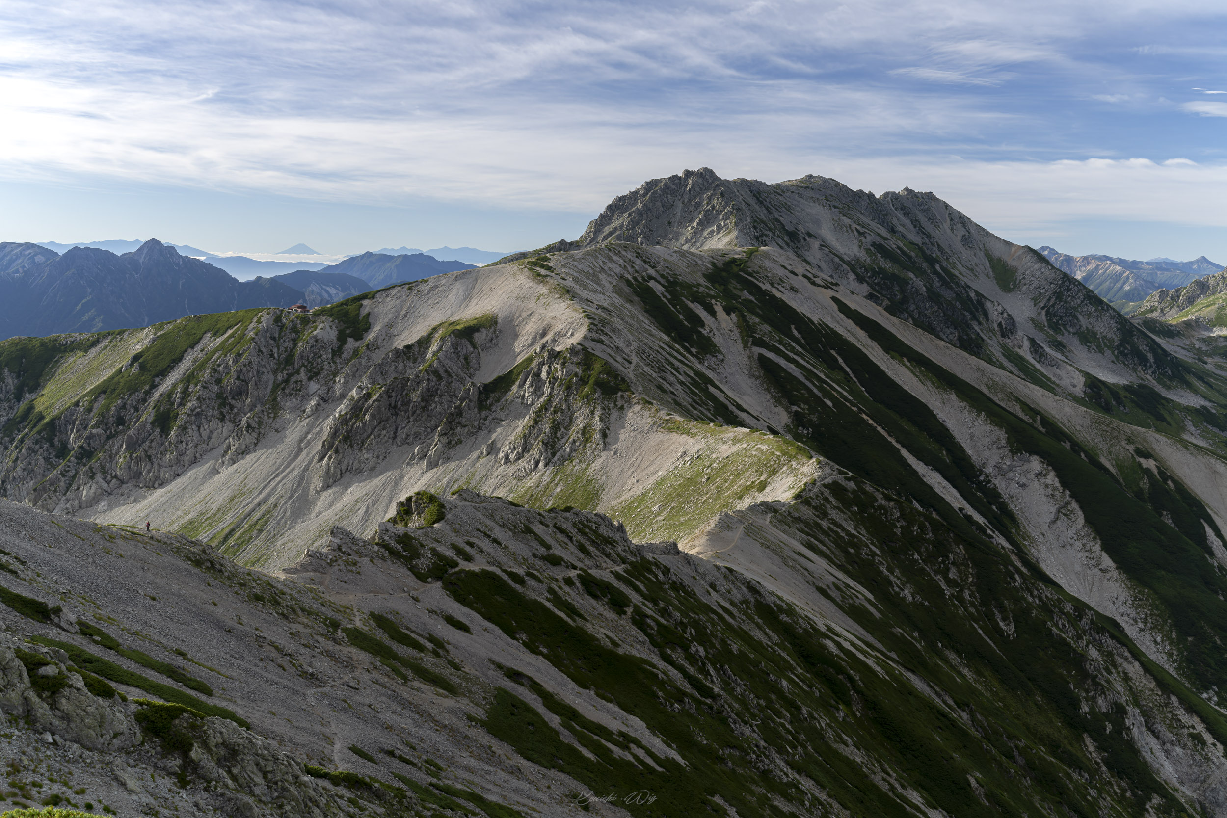 から雄山、そして遥かに富士山」の写真です。