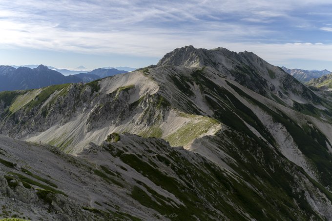 Twitterに投稿された写真「立山連峰 別山から雄山、そして遥かに富士山」