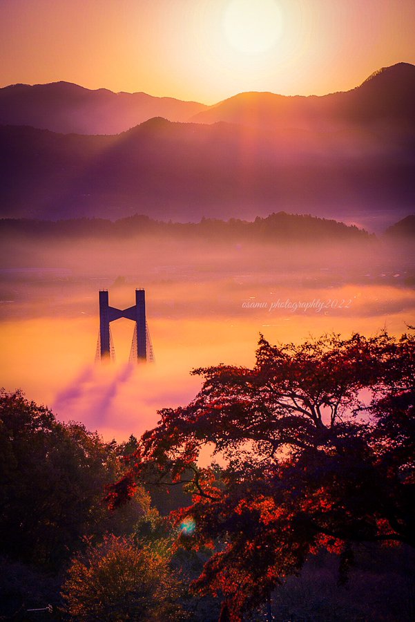 Twitterに投稿された写真「朝焼けに秩父ミューズパークから秩父の雲海」